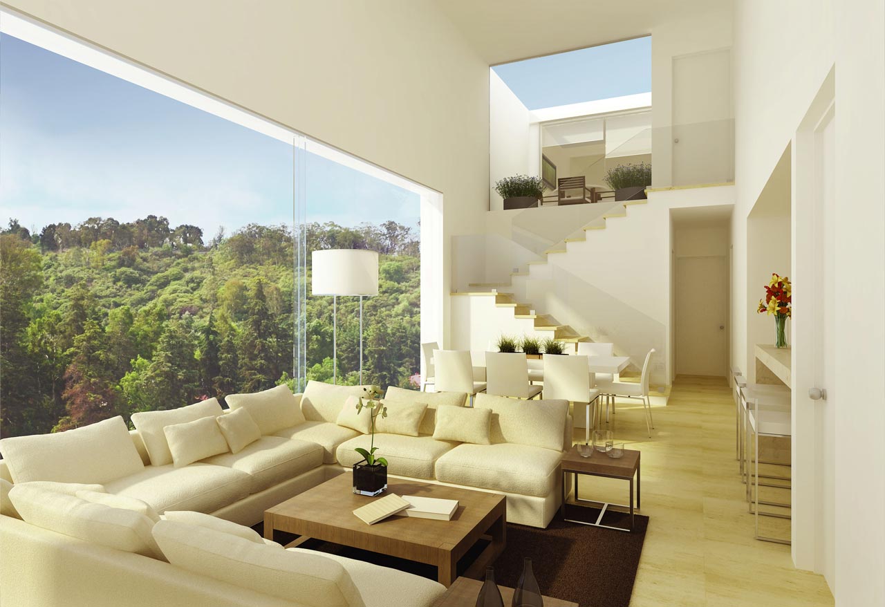 Located on one of the busiest avenues in Mexico City, the project faced the challenge of eliminating noise pollution.To address this, it was divided into two blocks. The first houses the office building, covering more than 3,500 m². The second block contains the apartments, protected by a wide separation between both buildings, achieving near-total noise isolation.