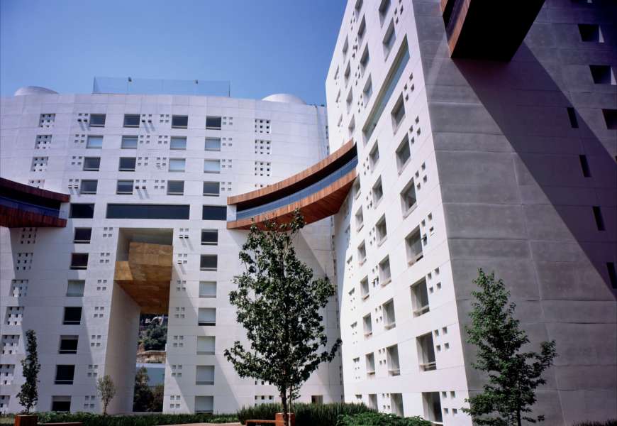 Belleza, simetría y movimiento es lo que denota Arboladas Lomas, un conjunto residencial que se erige en Paseo de la Reforma en la Ciudad de México. Su estructura se compone de cuatro bloques y, de entre ellos, pasa un corredor circular que los mantiene conectados y los convierte en un solo elemento.