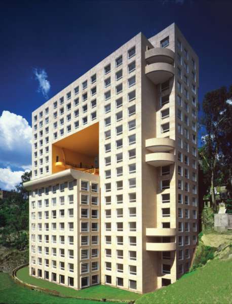 Fue desarrollada en una de las zonas más transitadas de la Ciudad de México; Paseo de la Reforma. Su morfología se caracteriza por tonos de piedra natural en sus escarpados muros exteriores y, cuyos pasillos, que parecen terrazas desde lo alto, son iluminados por un matiz azafrán que nos hace viajar a esa época primitiva y comunal donde los hombres y el fuego eran una unidad.