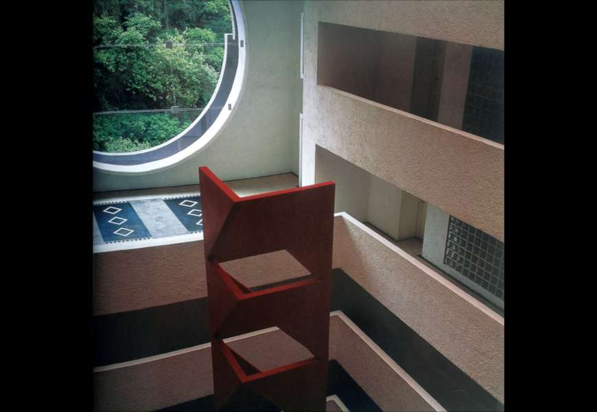 En su interior habita una escultura del artista mexicano Jesús Mayagoitia. ¿Qué mejor corazón para un edificio que una pieza metálica para que dé espíritu a la máxima creación del ser humano: el espacio que cada hombre designa como propio?